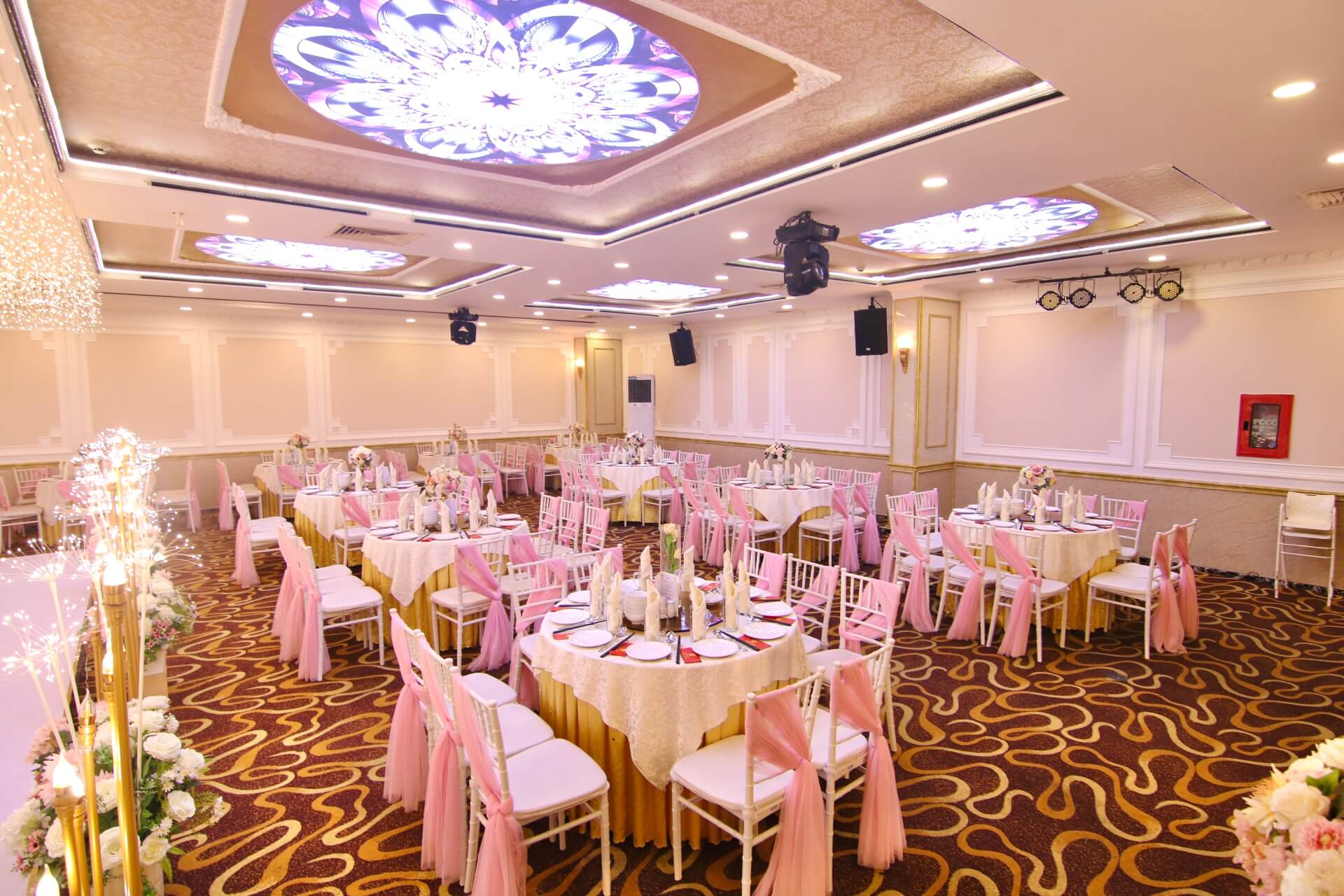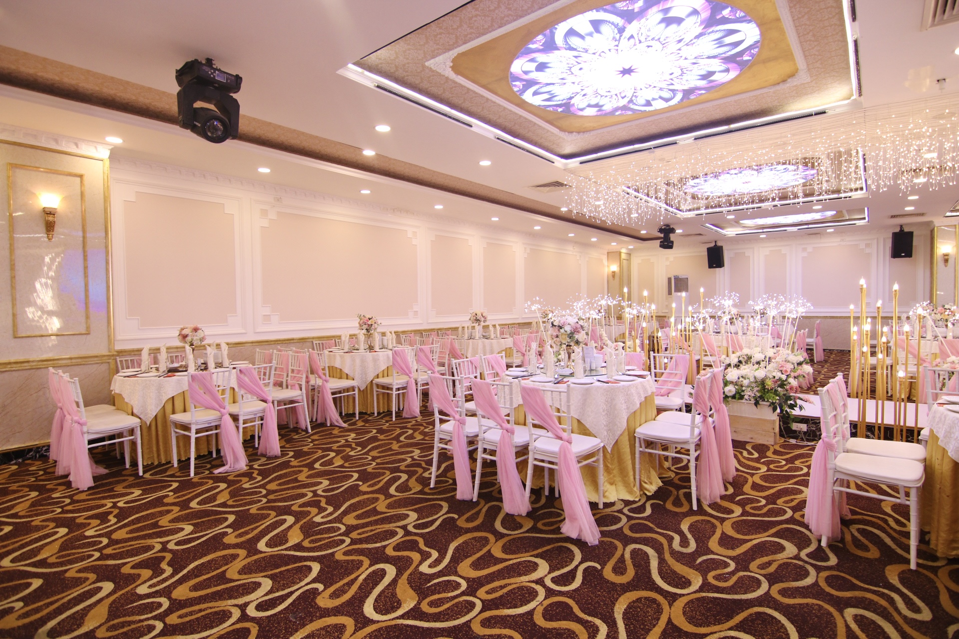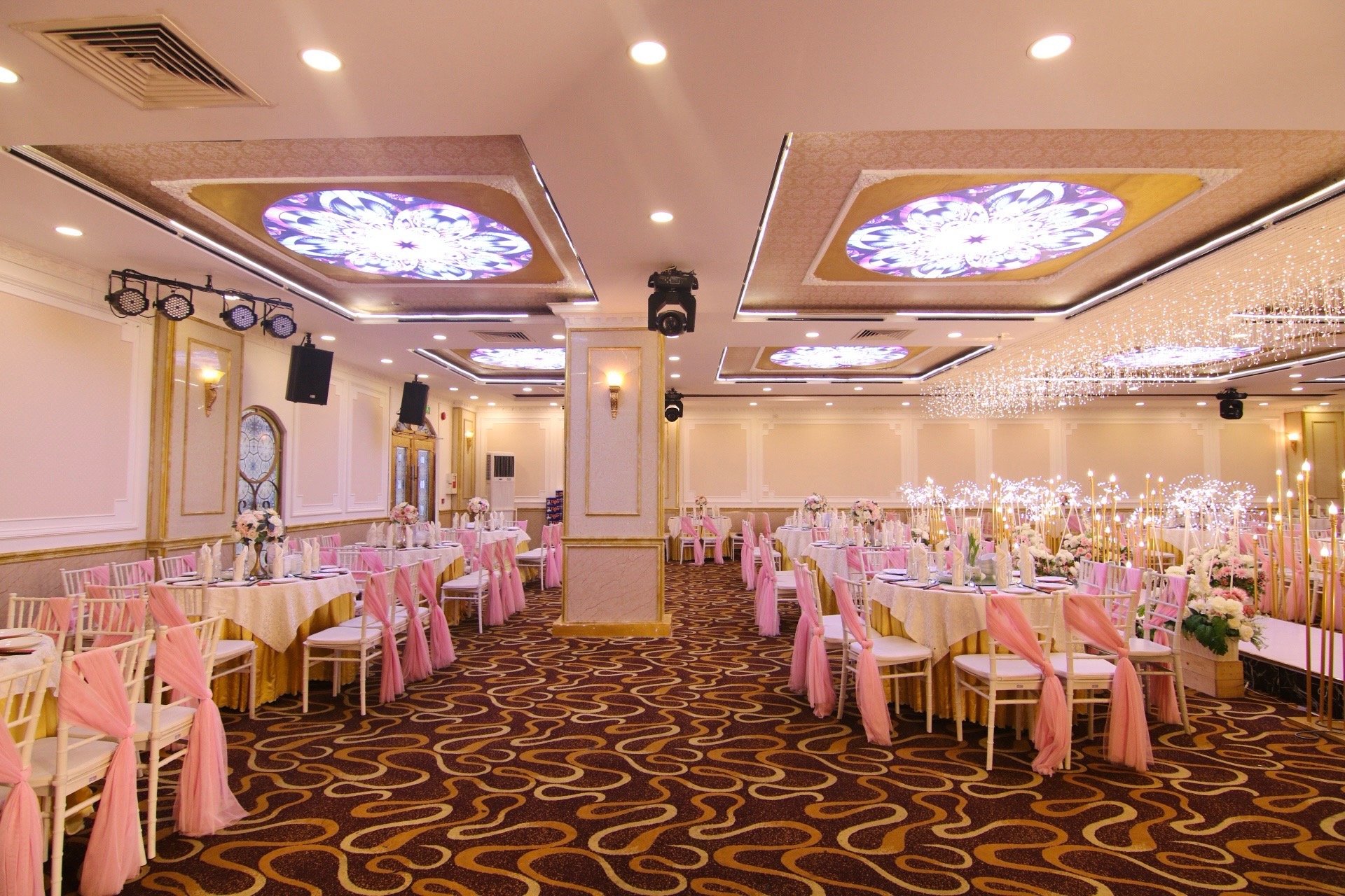 Trang nhã, lịch lãm với nguồn cảm hứng từ ý tưởng những chiếc cột lớn của kiến trúc La Mã, sảnh Doric đem đến phong cách nhẹ nhàng nhưng sang trọng cho bữa tiệc của bạn.